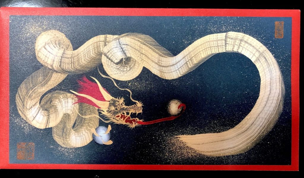 先ほどとは対照的に、金ベースの赤で生み出した一筆龍です。